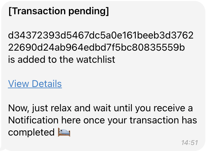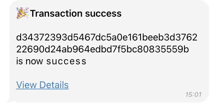 - Turn on Telegram notifications, you will get notified when the transaction is confirmed.