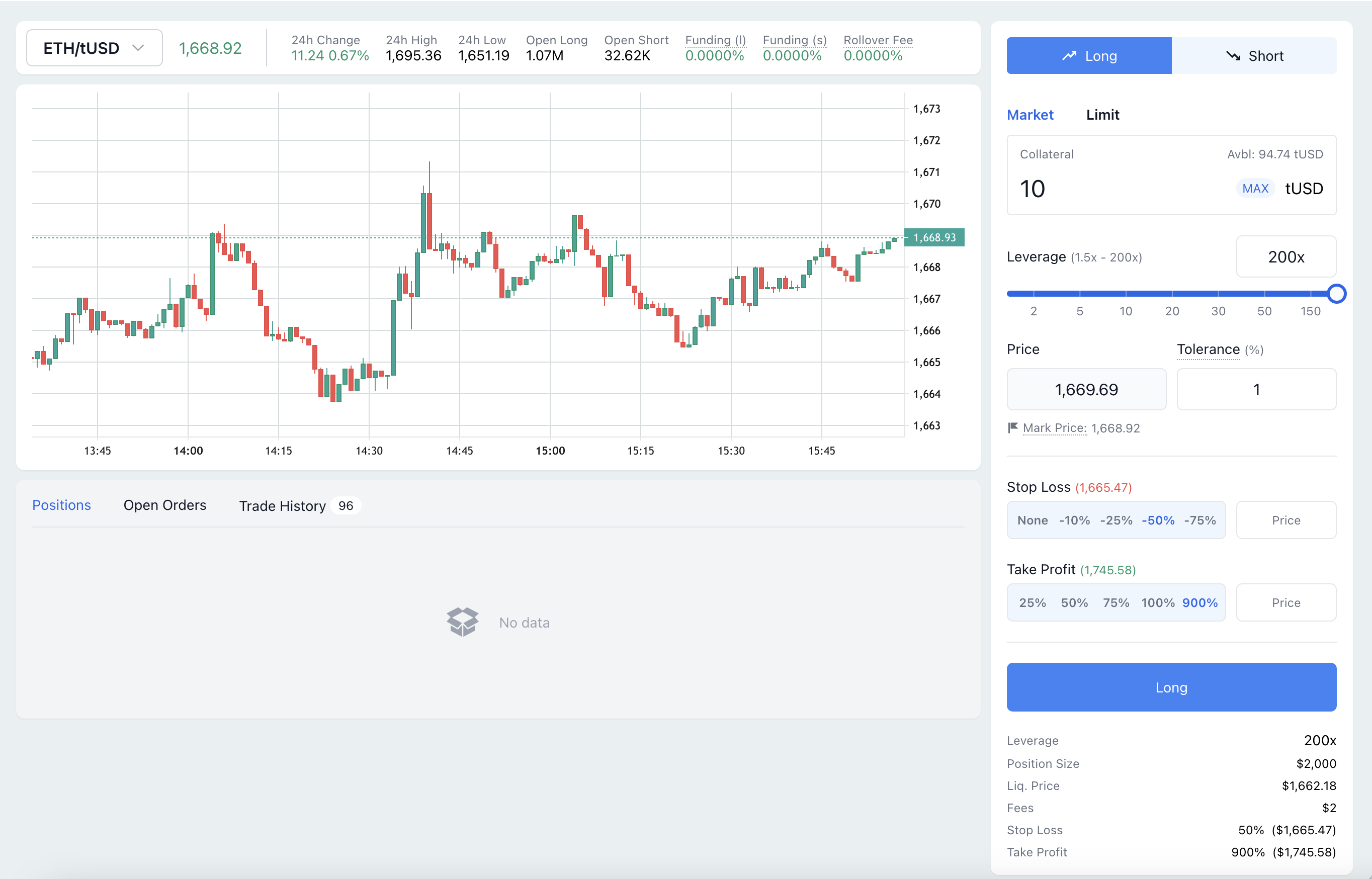 We offer perpetual futures with up to 200X leverage on BTC, ETH, and many mainstream crypto assets.