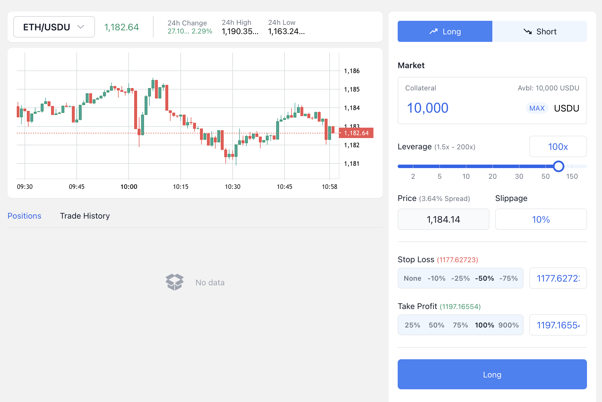 To open a position, you need to enter the margin you want to put up together with the leverage you are looking for.