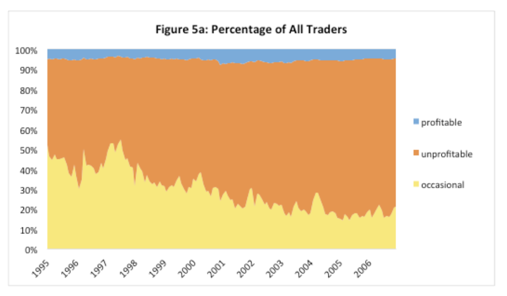 the aggregate performance of day traders is negative, that the vast majority of day traders are unprofitable, and many persist despite an extensive experience of losses
