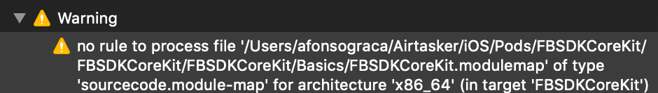 With the introduction of the `FBSDKCoreKit.modulemap` to the Basics folder, after updating to the newer version of the pod, I keep getting the following warning: