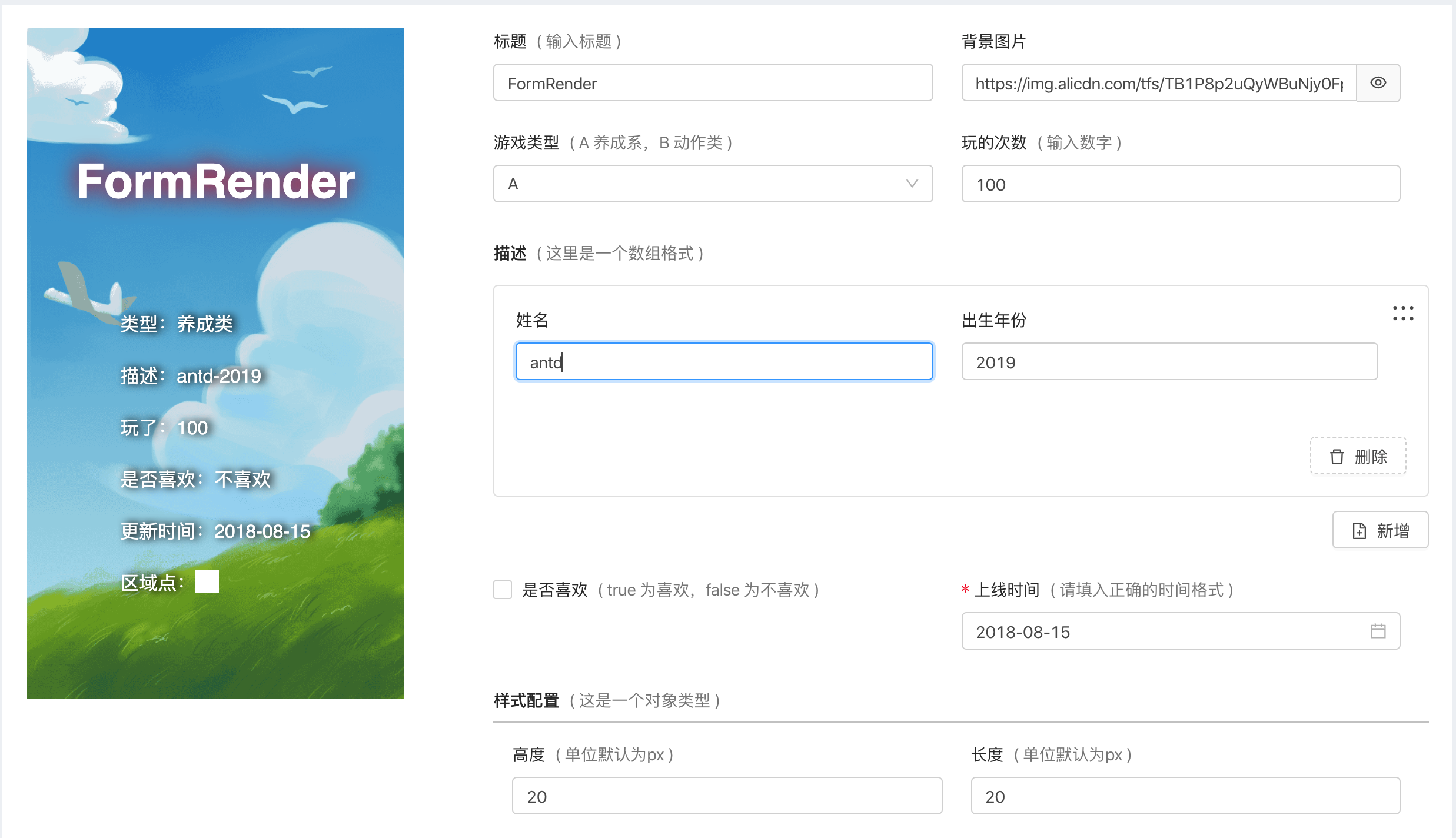 3.服务能力配置界面生成:常用于后台字段系统中,接口同学通过吐 JSON Schema 字段给前端界面,渲染出他所想要的界面以及获取用户的输入进行提交给后端,可以起到无需发布就可无缝扩展各种类型的作用
