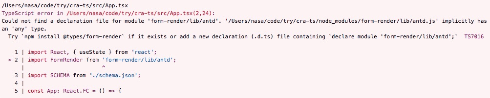 Could not find a declaration file for module 'form-render/lib/antd'. '/Users/nasa/code/try/cra-ts/node_modules/form-render/lib/antd.js' implicitly has an 'any' type.